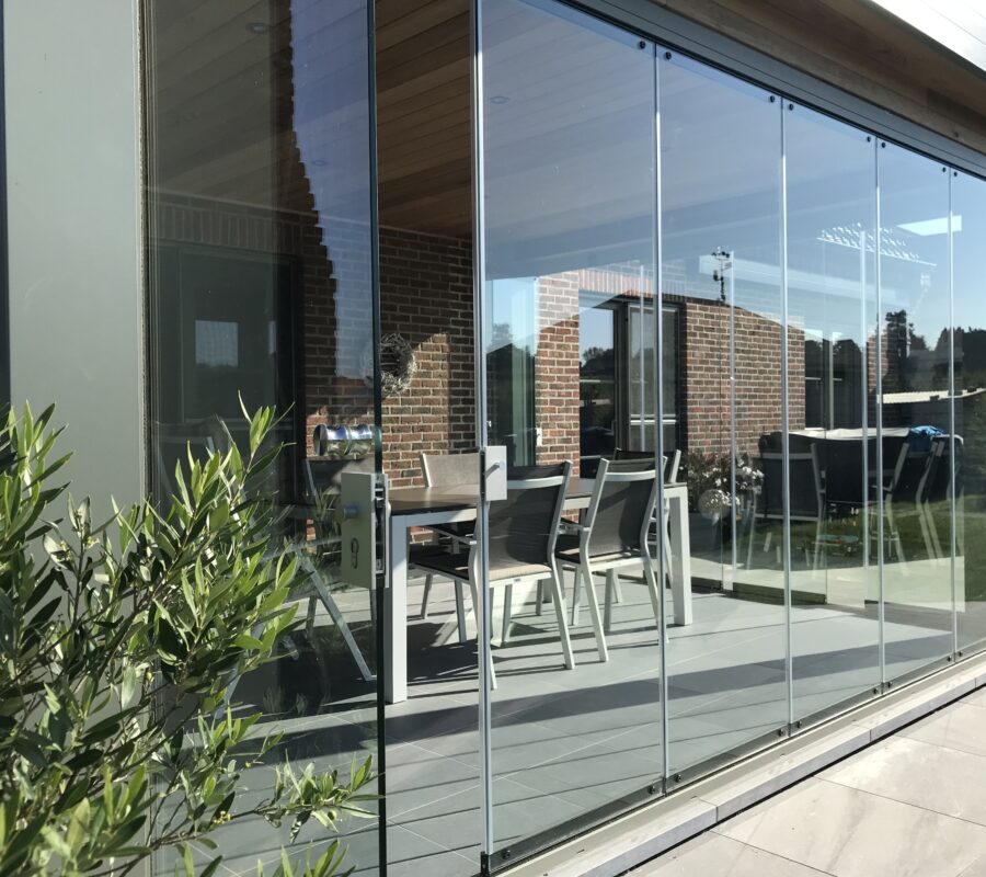 Foldedører er for deg som ønsker maksimal åpning mot naturen. Med sine rammeløse glassflater beholder man utsikten og dagslyset inn mot boligen, samtidig som man kan sitte ute beskyttet mot vær og vind.