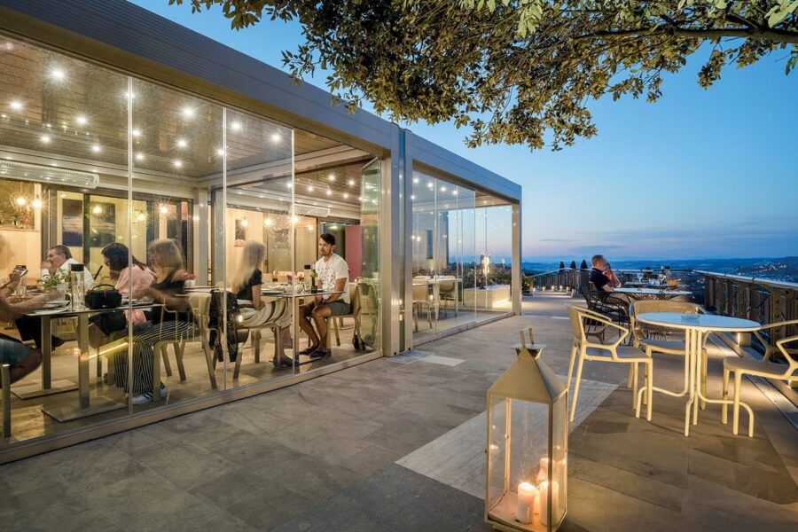 Med en utestue eller pergola, vil du skape en lun og behagelig atmosfære – selv når det regner. På varmere dager kan du åpne taket helt opp så gjestene dine får sitte under åpen himmel. Gjestene blir lenger, og bestiller mer. Kanskje velger kundene deg fremfor dine konkurrenter nettopp fordi man hos deg har mulighet til å sitte lunt og godt ute?