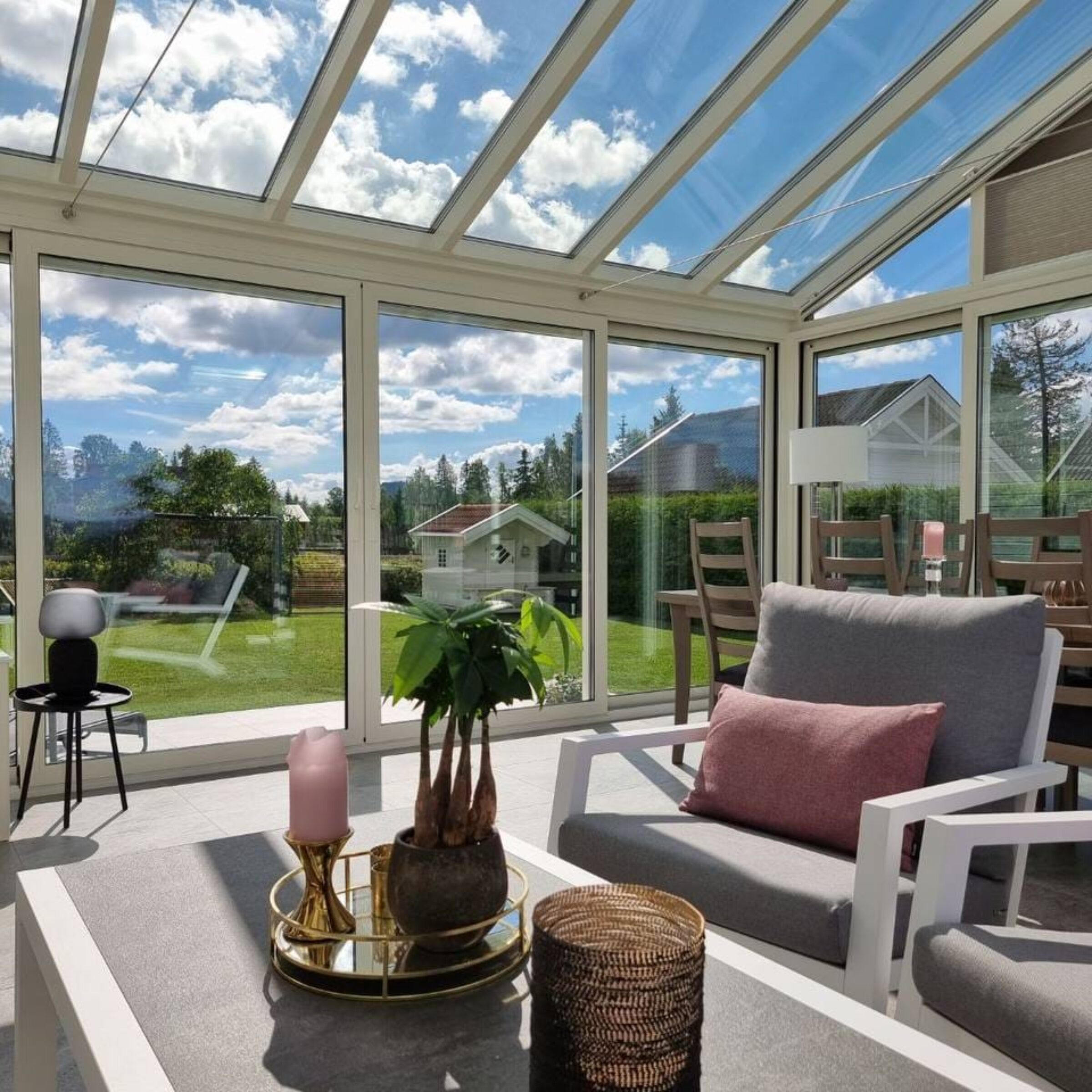 Med elegante design og rikelig med naturlig lys, tilfører fullisolerte vinterhager en luksuriøs følelse til hjemmet. De gir en vakker overgang mellom innendørs og utendørs. De rikelige naturlige lysinnslippene gjør at rommet føles luftig og åpent, noe som bidrar til en behagelig atmosfære.